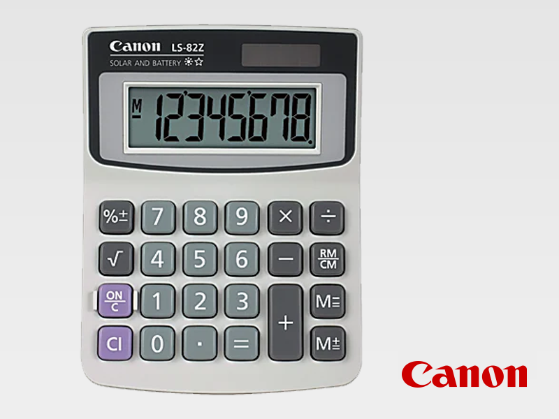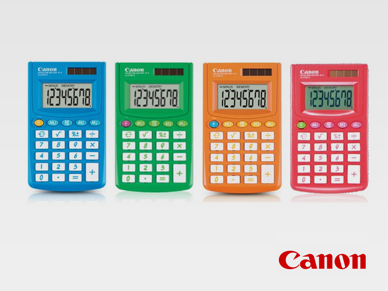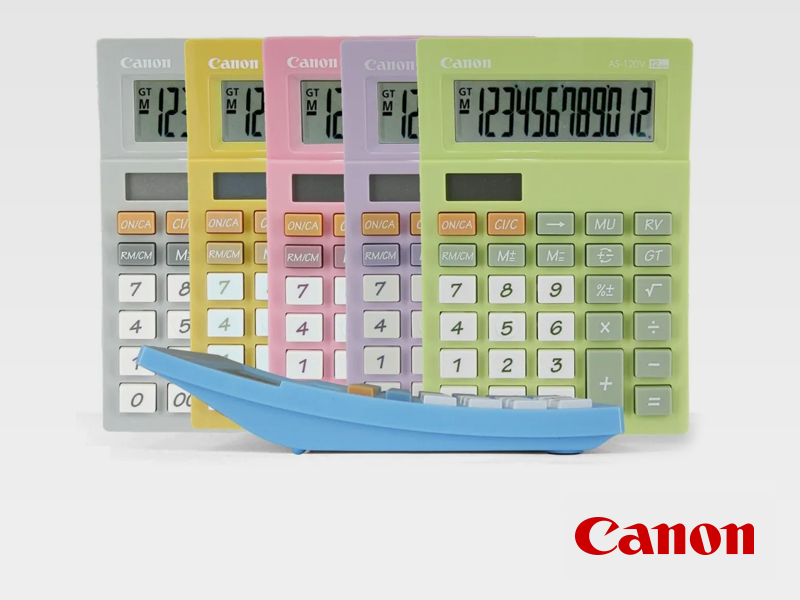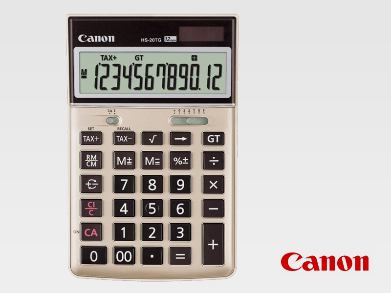12-digit desktop calculator is made using recycled Canon material to aid environmental sustainability.