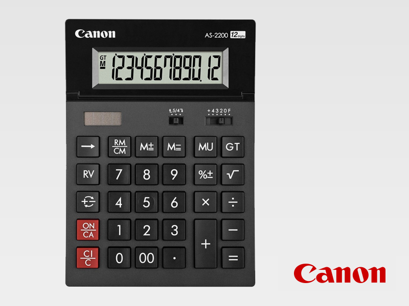 12-digit desktop calculator with practical Grand Total, Decimal selection and Rounding functions.