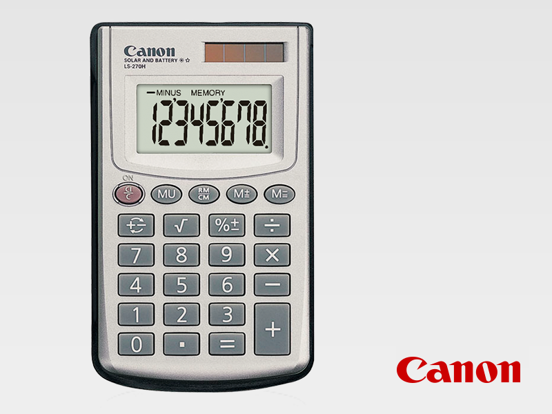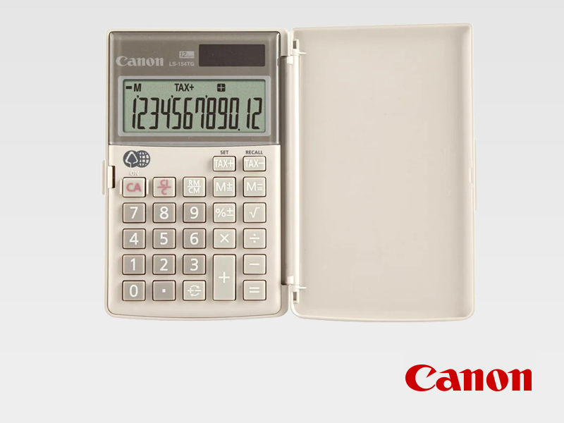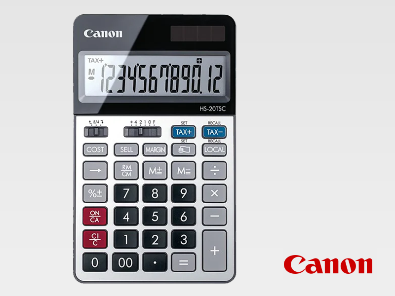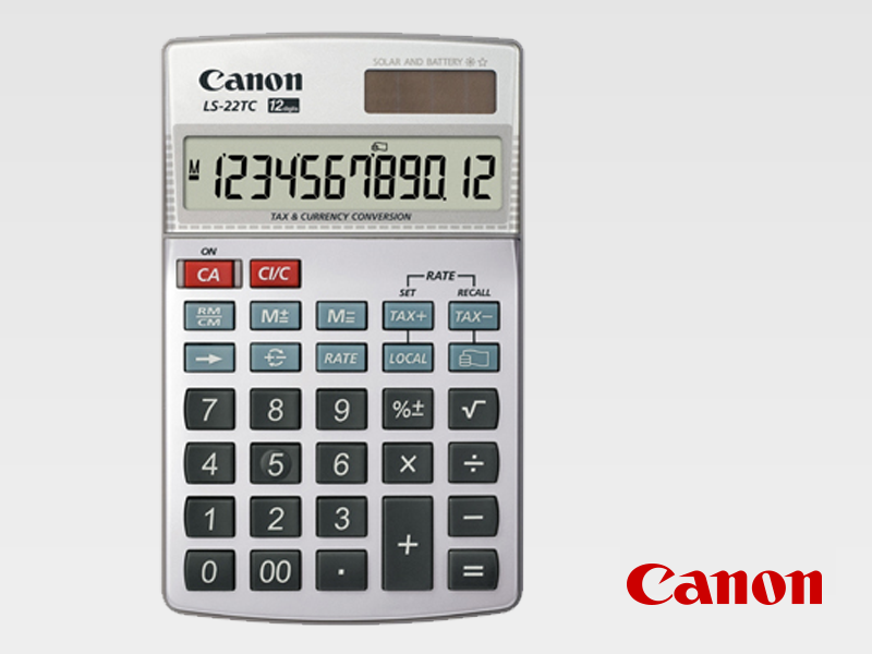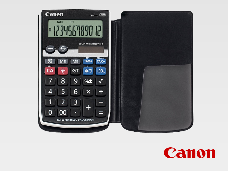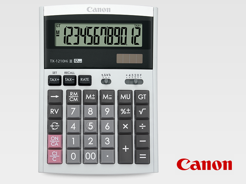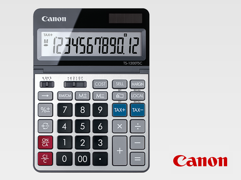 12-digit LCD display with functions such as tax calculations, cost-sell margin and constant calculation.