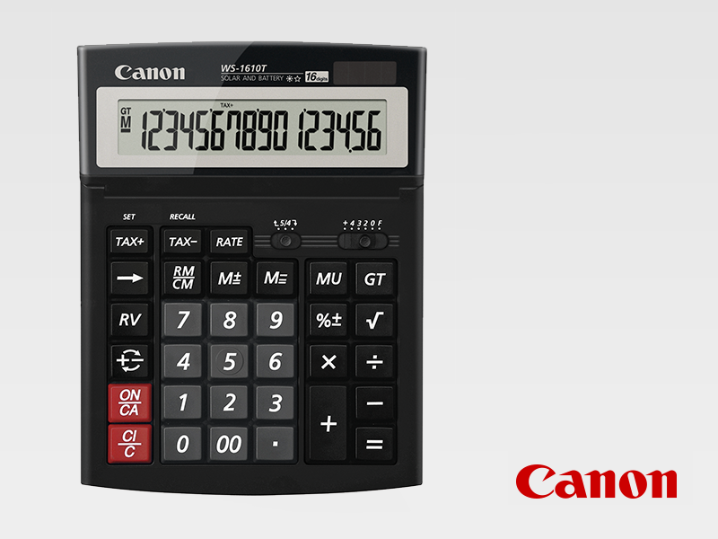A 16-digit desktop calculator with useful Tax Calculation functions and an adjustable tilt display panel.