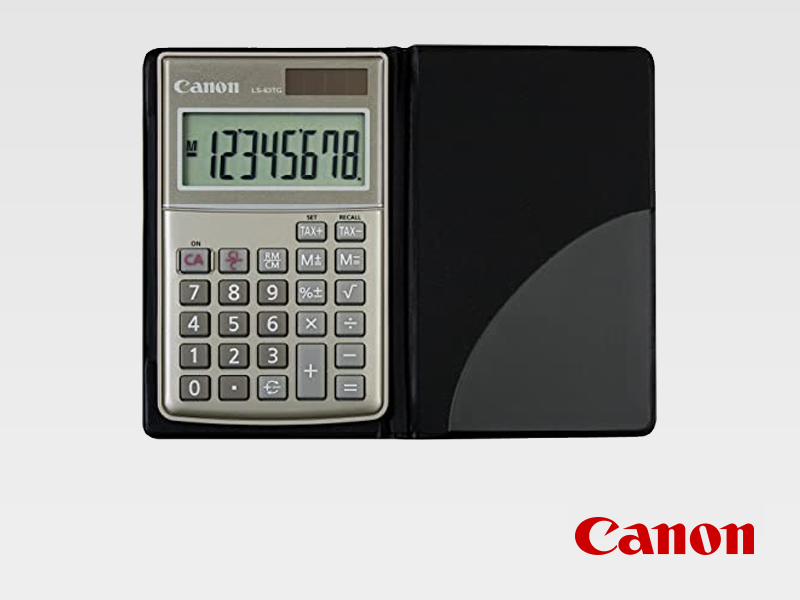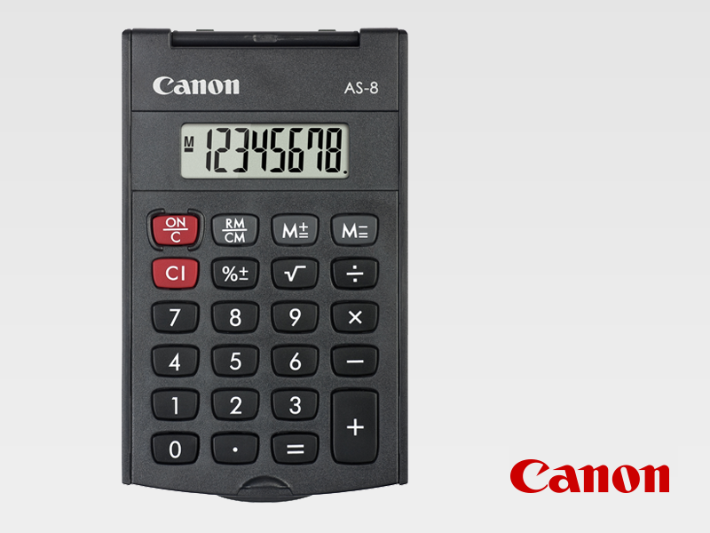 8-digit handheld calculator features the 360-degree upward folding durable cover and portable size