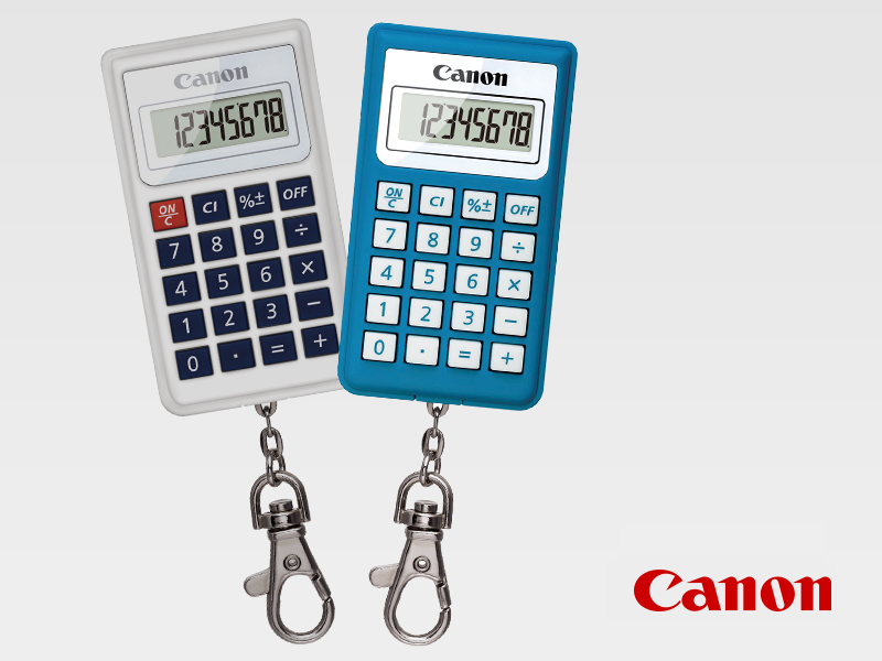 8 digit calculator features a durable metal key-chain and slim and lightweight body.